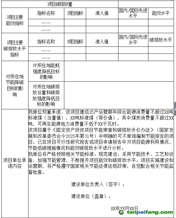 第十二条 需进行节能审查的固定资产投资项目,建设单位应按照31号令第十二条有关规定编制节能报告,不具备报告编制能力的建设单位应委托具备相应技术能力的机构编制节能报告。建设单位应出具书面承诺,对节能报告的真实性、合法性和完整性负责,不得以拆分或合并项目等不正当手段逃避节能审查。省发展改革委将结合实际采取节能报告质量审查等措施,加强对节能报告编制单位的管理。 内/容/来/自:中-国-碳-排-放*交…易-网-tan pai fang . com