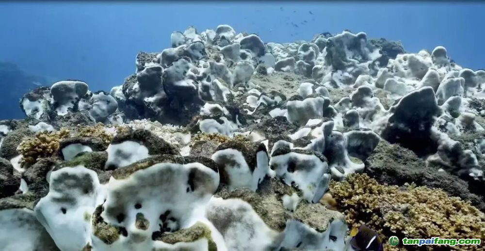 白化后的珊瑚。图源央视新闻 本+文`内/容/来/自:中-国-碳-排-放-网-tan pai fang . com