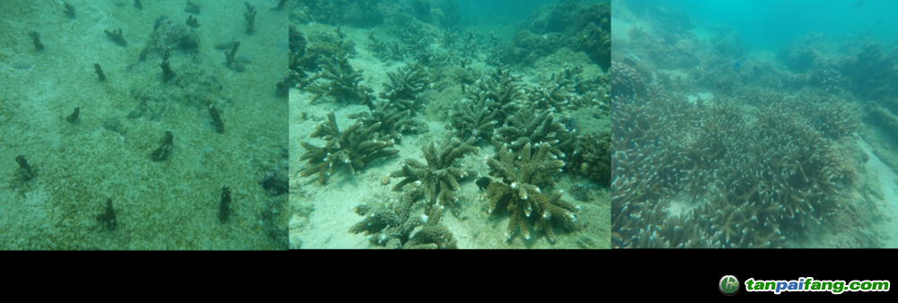 将珊瑚移植到海床上后,一株株珊瑚长成簇,再连成片,珊瑚自然死亡后留下碳酸钙骨骼,新的珊瑚不断在旧珊瑚上繁衍、生长、沉积,形成珊瑚礁、珊瑚岛……“以鹿角属珊瑚为例,环境适宜的情况下,从5厘米培育至10厘米,大概需要6个月。”刘骋跃说。 內/容/來/自:中-國/碳-排*放^交%易#網-tan p a i fang . com
