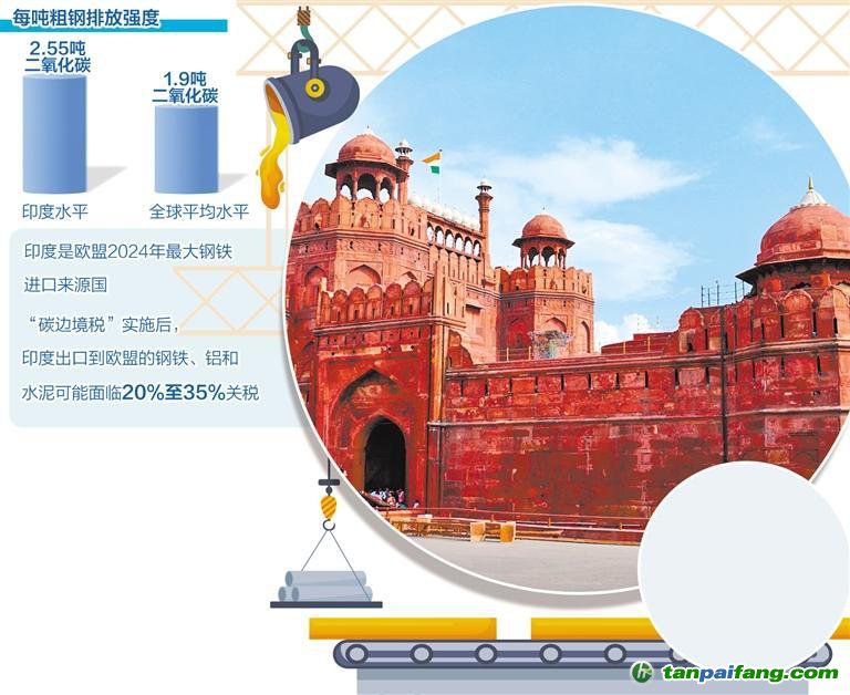 碳排放交易体系”相当的碳费用,简言之就是欧盟对来自气候政策宽松国家的进口高碳产品征收“碳差价”。该税种涵盖了印度对欧盟出口的上百个税目,对印度经济特别是其关键的能源密集型出口产业造成重大挑战,直接影响钢铁、铝等高碳排放产品,涉及印度对欧盟近100亿美元产品的出口。
